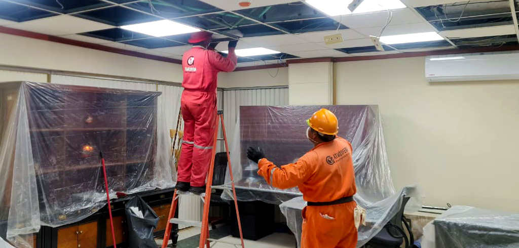Limpieza por derrames de hidrocarburos dentro de instalaciones de procesos, ductos y componentes.